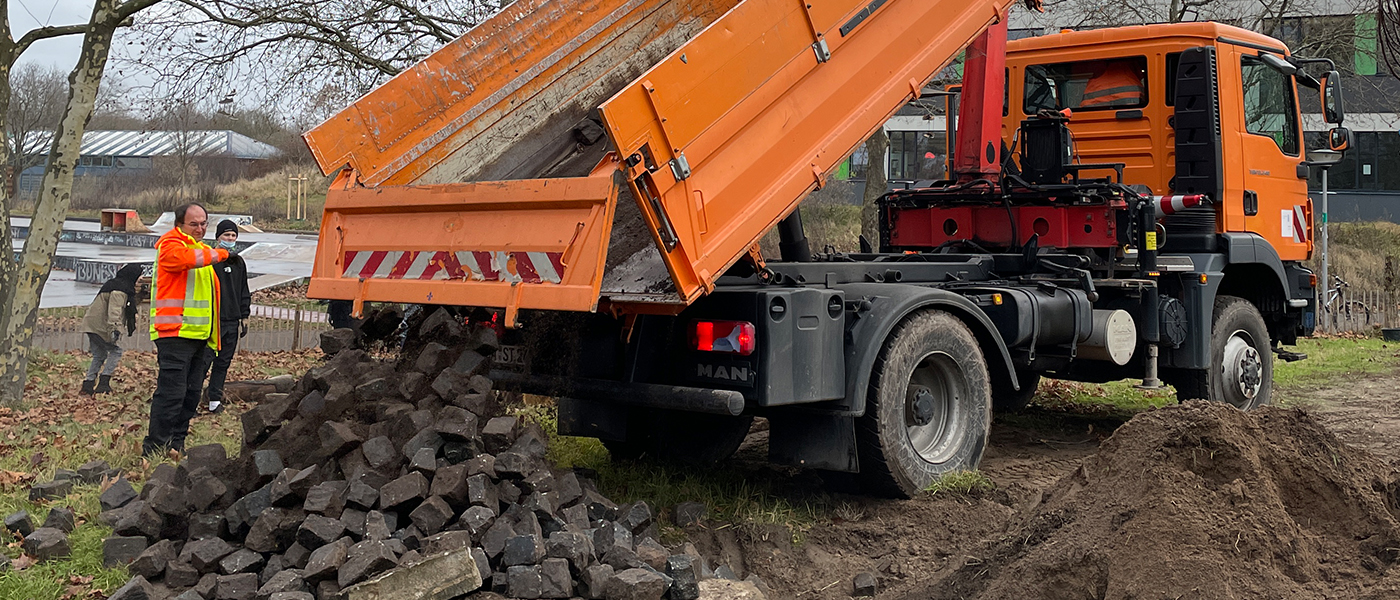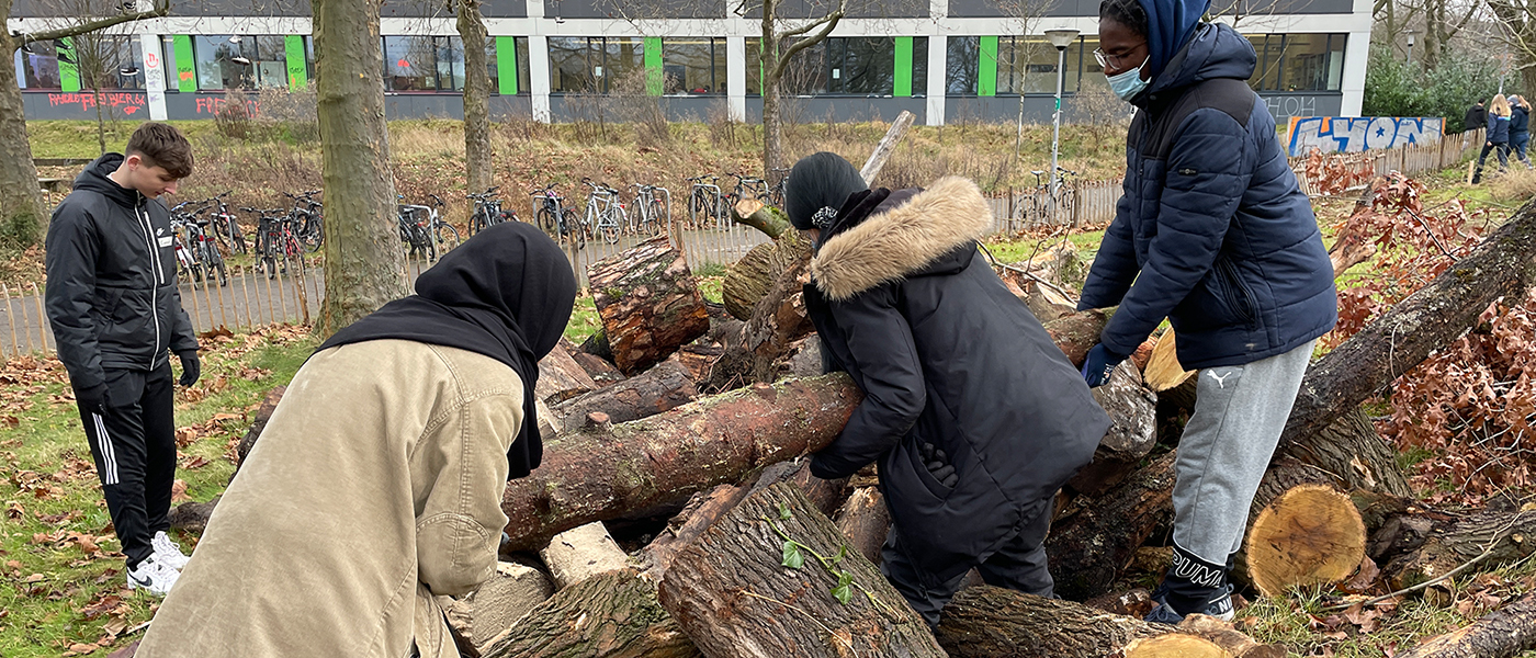 Zwischen dem B-Gebäude und dem A-Gebäude unserer Schule – im Herzen des Bürgerparks – liegt ein, meist als Abkürzung genutzter Weg. Diese Grünfläche neben fristete bisher ein trostloses Trampelpfad-Dasein.