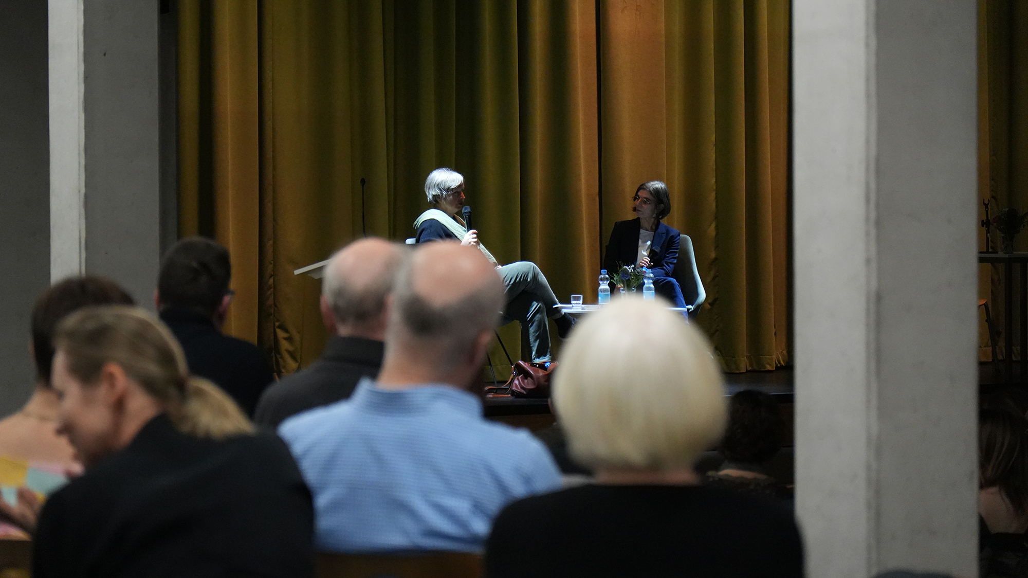 Ein weiterer Aspekt, der im Kontext der Veranstaltung deutlich wurde, ist die aktuelle Relevanz des Romans. So ist Heimsuchung inzwischen in mehreren Bundesländern Bestandteil des Deutschabiturs. Die Vielschichtigkeit des Textes, unter anderem begründet durch die fragmentarische Erzählweise und die Vielzahl an Perspektiven, fordert Leserinnen und Leser dazu heraus, eigene Deutungen zu entwickeln und sich aktiv mit historischen Umbruchphasen auseinanderzusetzen. Jenny Erpenbeck gelang es, durch ihre ruhige, präzise und überaus humorvolle Vortragsweise die dichte Atmosphäre ihres Textes erfahrbar zu machen und zugleich Raum für Reflexion zu eröffnen. Der Abend zeigte, wie Literatur als Medium dienen kann, um komplexe historische Zusammenhänge verständlich zu machen und individuelle Erfahrungen in einen größeren Kontext einzuordnen.